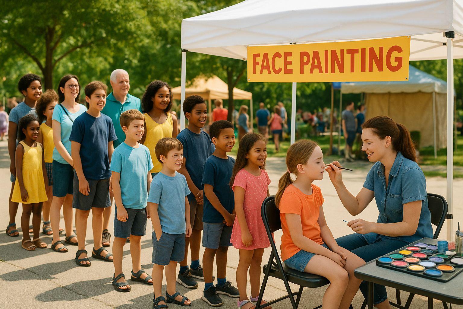 페이스페인팅은 손님 1명당 그림 퀄리티에 따라 평균 3~5분 정도가 소요됩니다. 예를 들어 40명이 대기 중이라면 최소 2시간 이상이 소요되는 셈이죠. 따라서 행사 시작 전부터 예상 인원을 체크하고, 줄을 어느 시점에 끊을지 미리 계획해야 합니다.